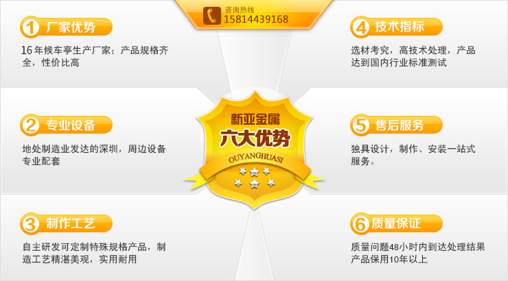 深圳市新亞金屬制品有限公司坐落于沿海經(jīng)濟(jì)中心——深圳,是國內(nèi)城市公共設(shè)施、交通設(shè)施、裝飾工程企業(yè)之一,是一家具有自主研發(fā)和設(shè)計(jì)能力的以公交候車亭為主導(dǎo)的綜合性金屬制品企業(yè)。